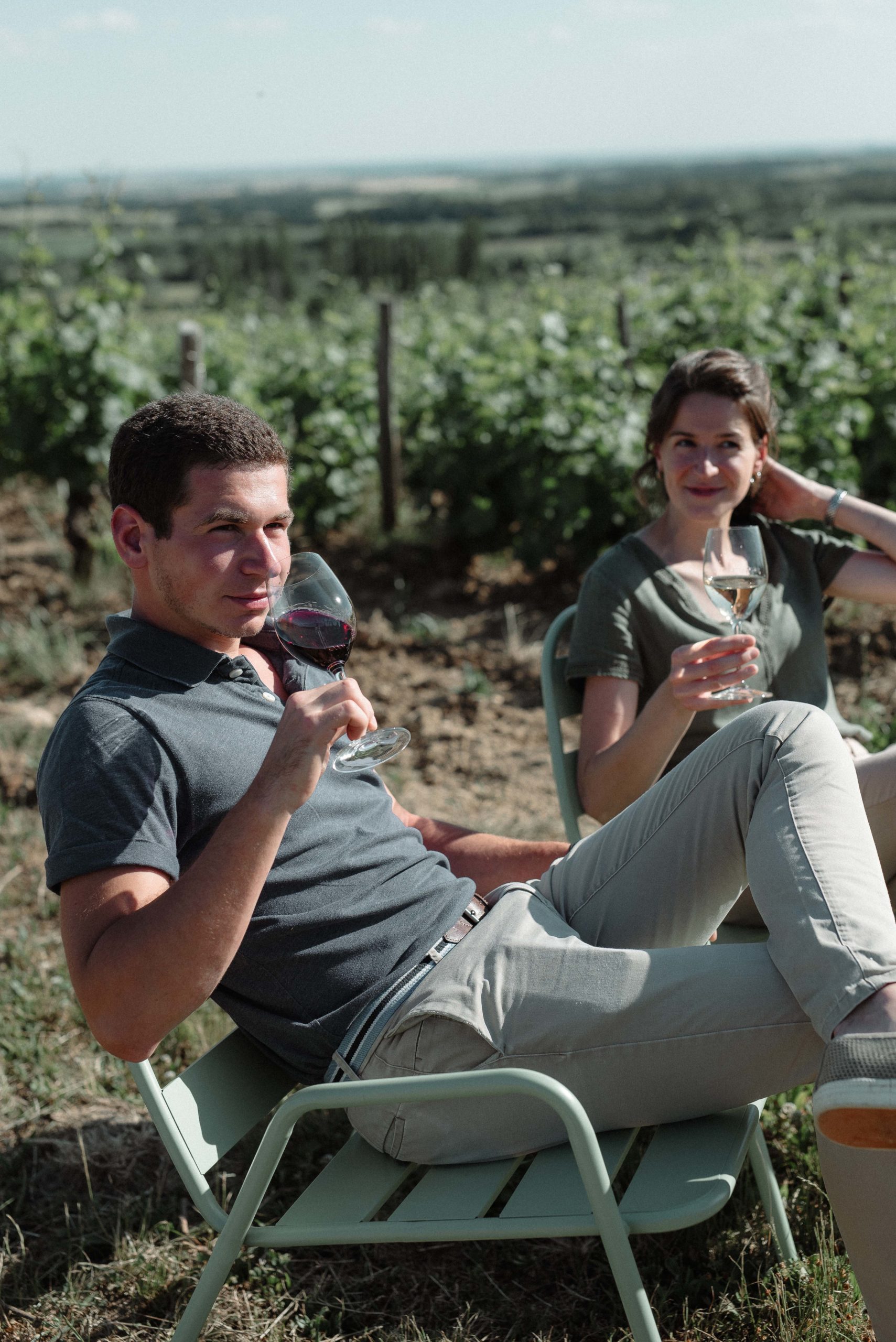 Aujourd’hui, deux générations de vignerons s’activent au rythme des saisons. Anne et Pierre-Alexandre reprennent le flambeau de leurs parents. La totalité du vignoble est conduite en agriculture biologique.